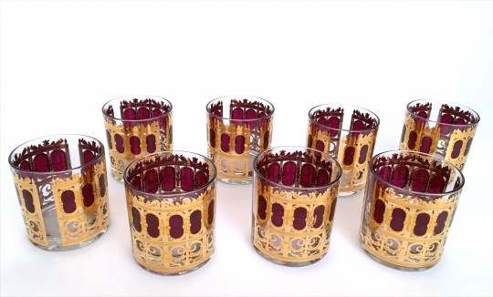 Set of Eight 1960s Vintage Culver LTD “Cranberry” Rocks Glasses