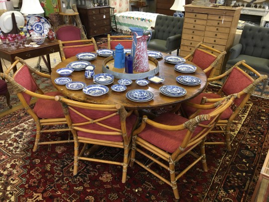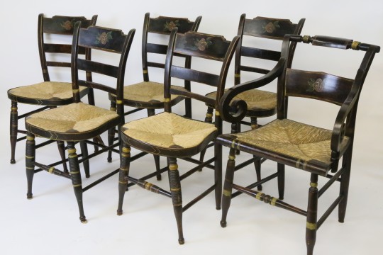 Set of Six American Sheraton Rush Seat Dining Chairs
