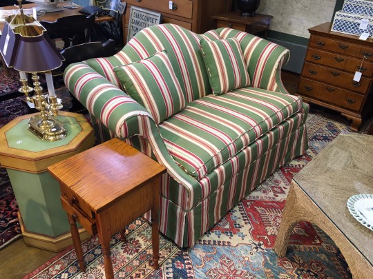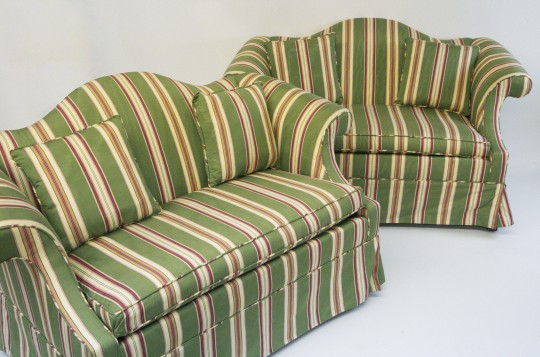 Pair of Petite Upholstered Camelback Settees