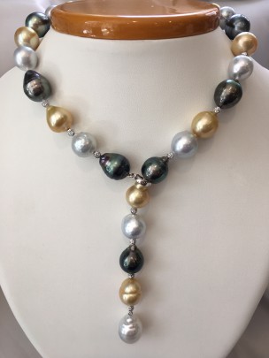 12mm – 14.2mm South Sea and Tahitian Baroque Pearl Lariat Necklace