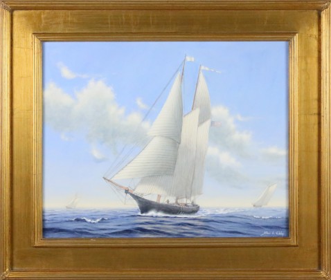 Alan J. Eddy Oil on Canvas “Three American Vessels at Full Sail”