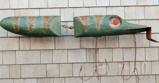 Folk Art Carved and Painted Reticulated Ice Fishing Lure Trade Sign