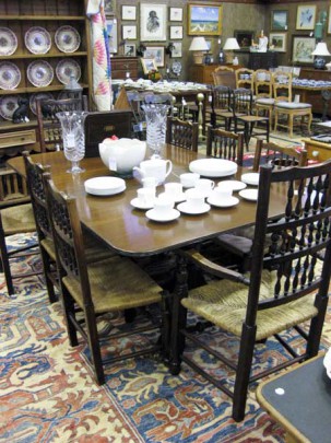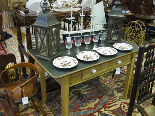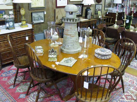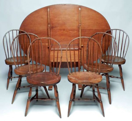 Set of Six Pennsylvania Windsor Side Chairs, American Pine Chair Table