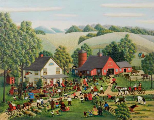 E. Melvin Bolstad Folk Art Acrylic on Board