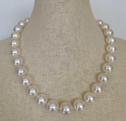 Fine 13mm x 15.7mm White South Sea Pearl Graduated Necklace