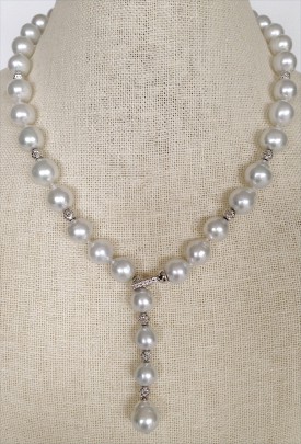 White South Sea Pearl and Diamond Lariat Necklace