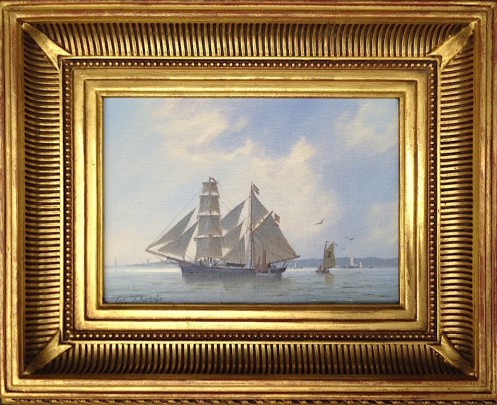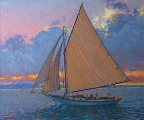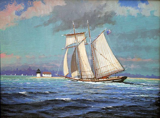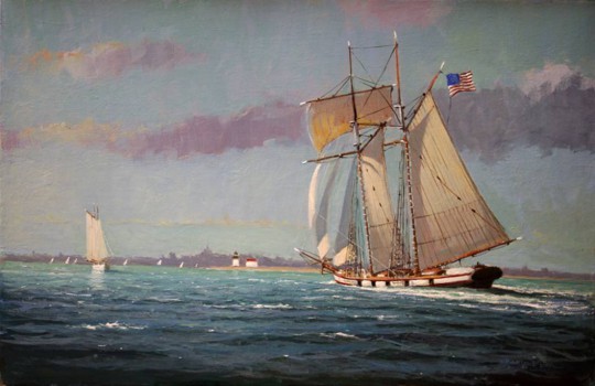 William W. Lowe Oil on Linen “Topsail Schooner Entering Nantucket”
