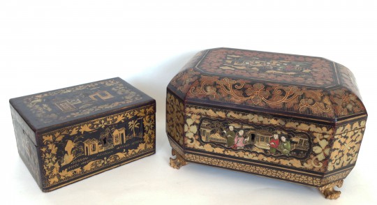 19th Century Chinese Export Black Lacquered and Gilt Tea Caddies