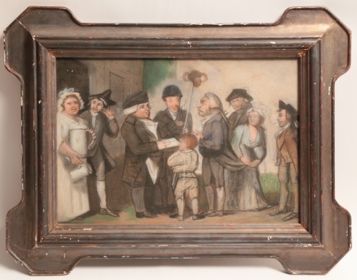 19th Century Pastel on Paper “Gathering at the Pub”