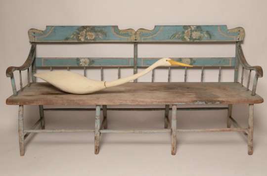 19th Century American Deacon’s Bench & Carved and Painted Folk Art Egret