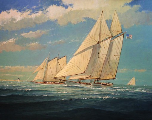 William Lowe Oil on Linen “Schooners Under Full Sail – Nantucket”