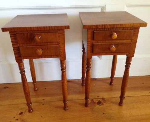 Pair of Petite Tiger Maple Two-Drawer Stands