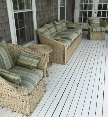 English Wicker Sofa and Pair of Armchairs with Ottomans