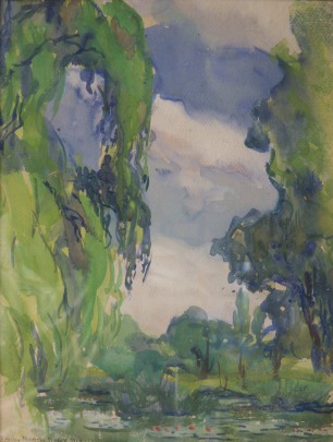 Emily Nichols Hatch Watercolor “Lily Pond in a Wooded Landscape”