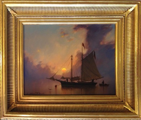 William R. Davis Oil on Panel “Mooring at Dusk”