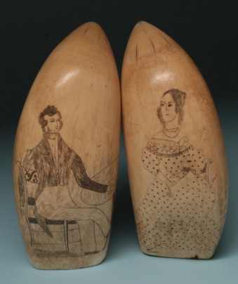 Pair of 19th Century Sailor Scrimshawed Whale Teeth