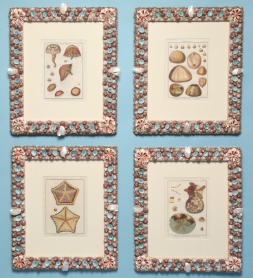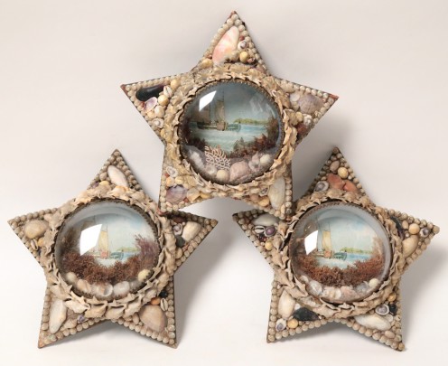 Three Victorian Shell Encrusted Star Form Framed Nautical Prints