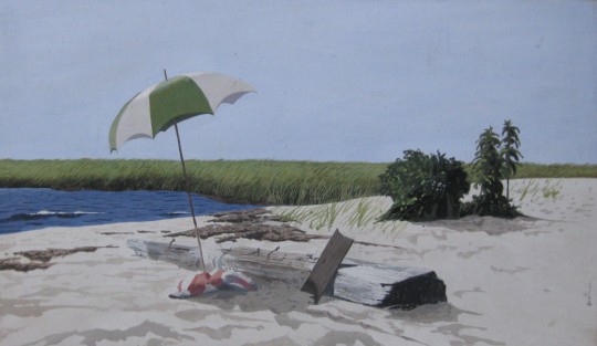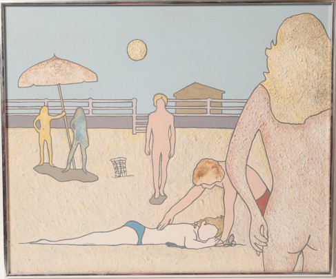 Pair of Mixed Media Oil and Sand Paintings of Venice Beach Sunbathers