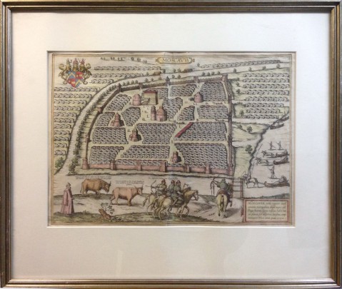 16th Century Colored Braun and Hogenberg Engraving of Moscow