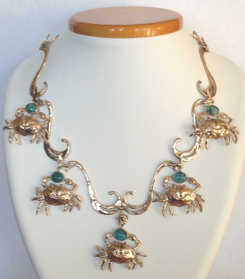 Lady’s 14k Yellow Gold Tourmaline & Ruby Crab Necklace