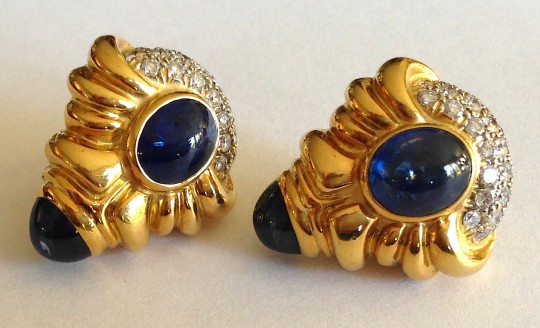 Pair of 18k Gold, Sapphire and Diamond Earrings