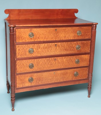 American Sheraton Cherry & Bird’s Eye Maple Chest of Drawers, circa 1820