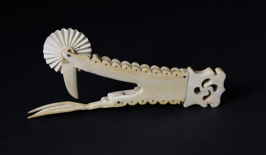 Whaler Made Antique Whale Ivory Naughty Leg Pie Crimper, circa 1850