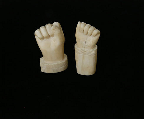 Two Antique Carved Whale Ivory Clenched Fist Studies, circa 1870-80