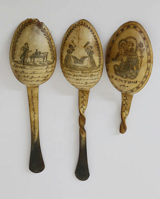 Three Scrimshaw Horn Spoons, mid 19th century