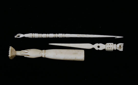 Three Antique Sailor Made Whale Ivory Utensils