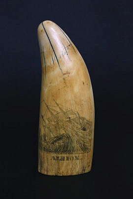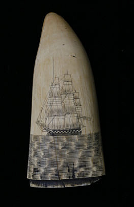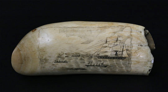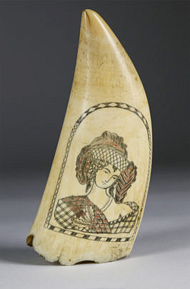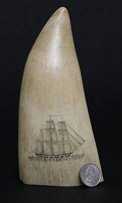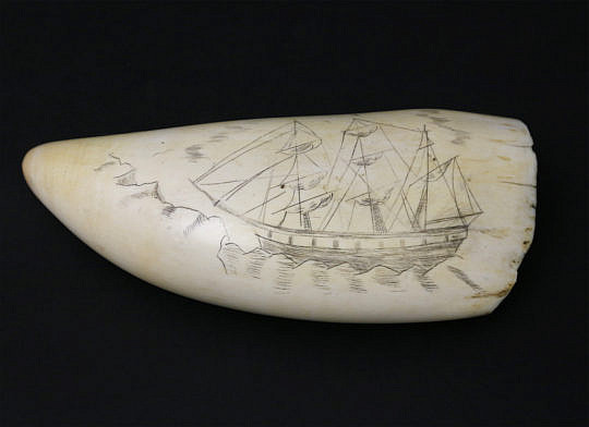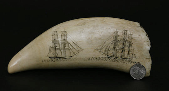Antique American Scrimshaw Whale Tooth, circa 1860