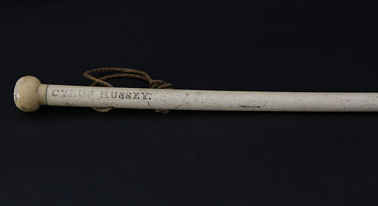 Cyrus Hussey Scrimshawed Nantucket Whalebone and Whale Ivory Walking Stick, circa 1830