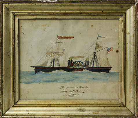 Watercolor on Paper “Portrait of the Steamship Sarah J. Mathers”, circa 1854