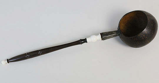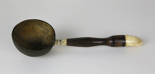 Antique Inlaid Whale Ivory, Wood and Coconut Shell Dipper, circa 1860