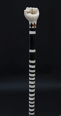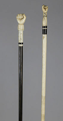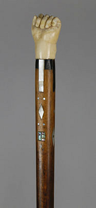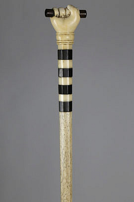 Fine Carved Whale Ivory Clenched Fist with Snake Grip Walking Stick, circa 1850