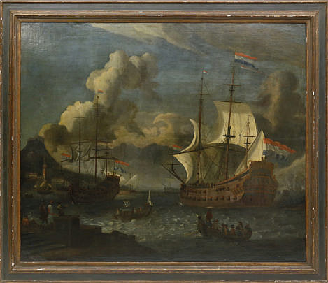 Follower of Abraham Storck “Seascape with Two Dutch Man-o-War Off the Bay of Smyrna”
