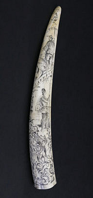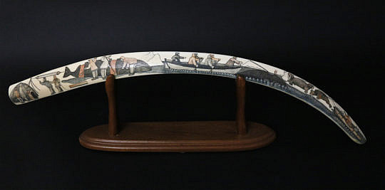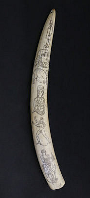 Antique Pictorial Scrimshaw Walrus Tusk, circa 1860