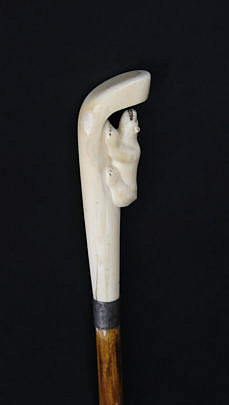 Inuit Carved Walrus Ivory Walking Stick, circa 1900