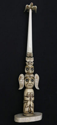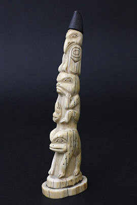 Carved Walrus Ivory Northwest Totem Pole