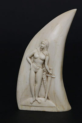 Antique Scrimshaw Whale Tooth, 1st half of the 19th Century
