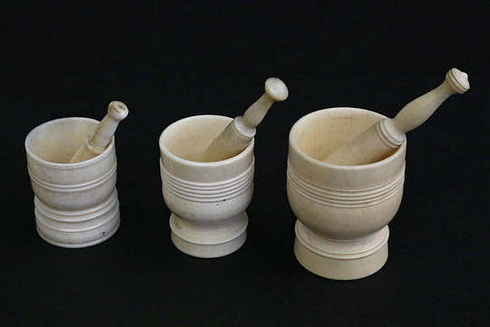 Set of 3 Graduating Antique Whale Ivory Mortar and Pestles, circa 1860