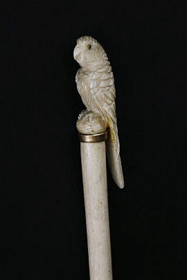 Carved Tropical Bird Grip Walking Stick, circa 1870