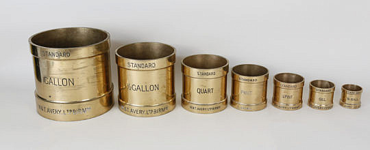 Set of 7 World War II English Royal Navy Bronze Standard Liquid Measures