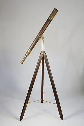 English Telescope on Oak Tripod Stand, mid 19th Century