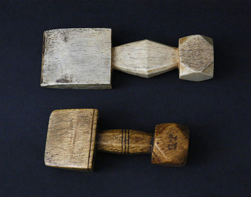 Two Carved Antique Whalebone Seam Rubs, circa 1830-1860