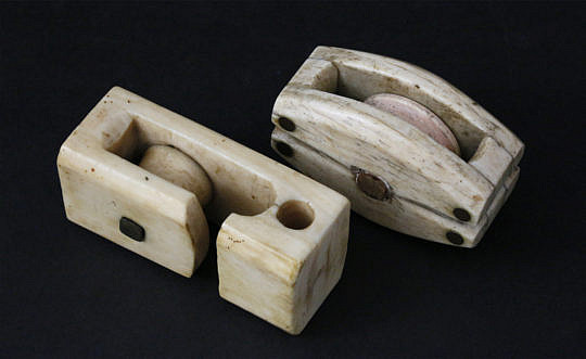 Antique Whale Ivory Snatch Block and Whalebone Single Block