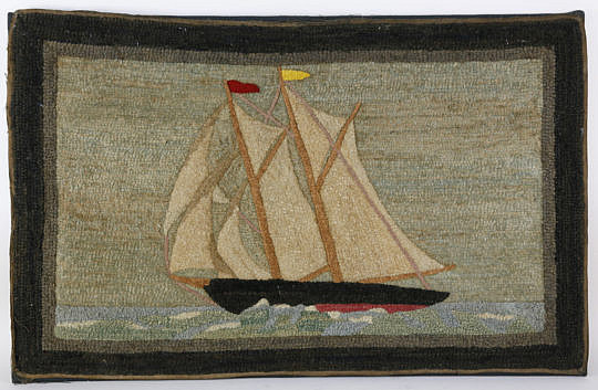 Antique Schooner Hooked Rug at Full Sail
