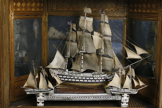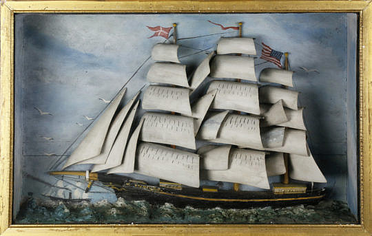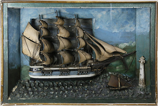 American Folk Art Ship Shadowbox Diorama, 19th Century