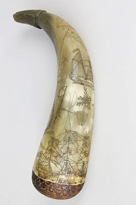 1845 American Folk Art Powder Horn