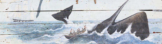 Oil on Old Floor Board “Nantucket Primitive Whaling Scene”